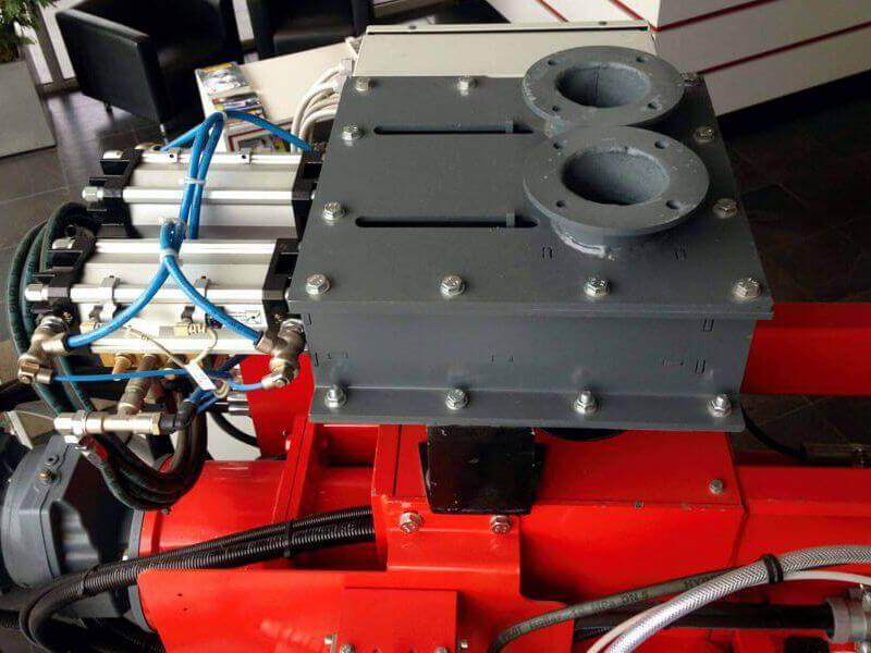 Esta solución es adecuada para producir grandes moldes en los cuales necesariamente el mezclador debe posicionarse en la zona de moldeo.